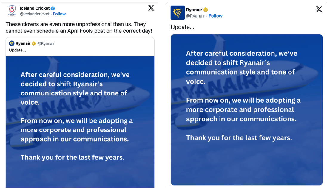 Cultural Impact: The “Ryanair prank confusion” trend took off during April Fools’ Day 2026, when Ryanair posted a surprisingly serious, corporate-style announcement claiming they were rebranding and toning down their famously chaotic social media presence. The tone was so out of character that people couldn’t immediately tell if it was real or a prank — sparking mass confusion online.