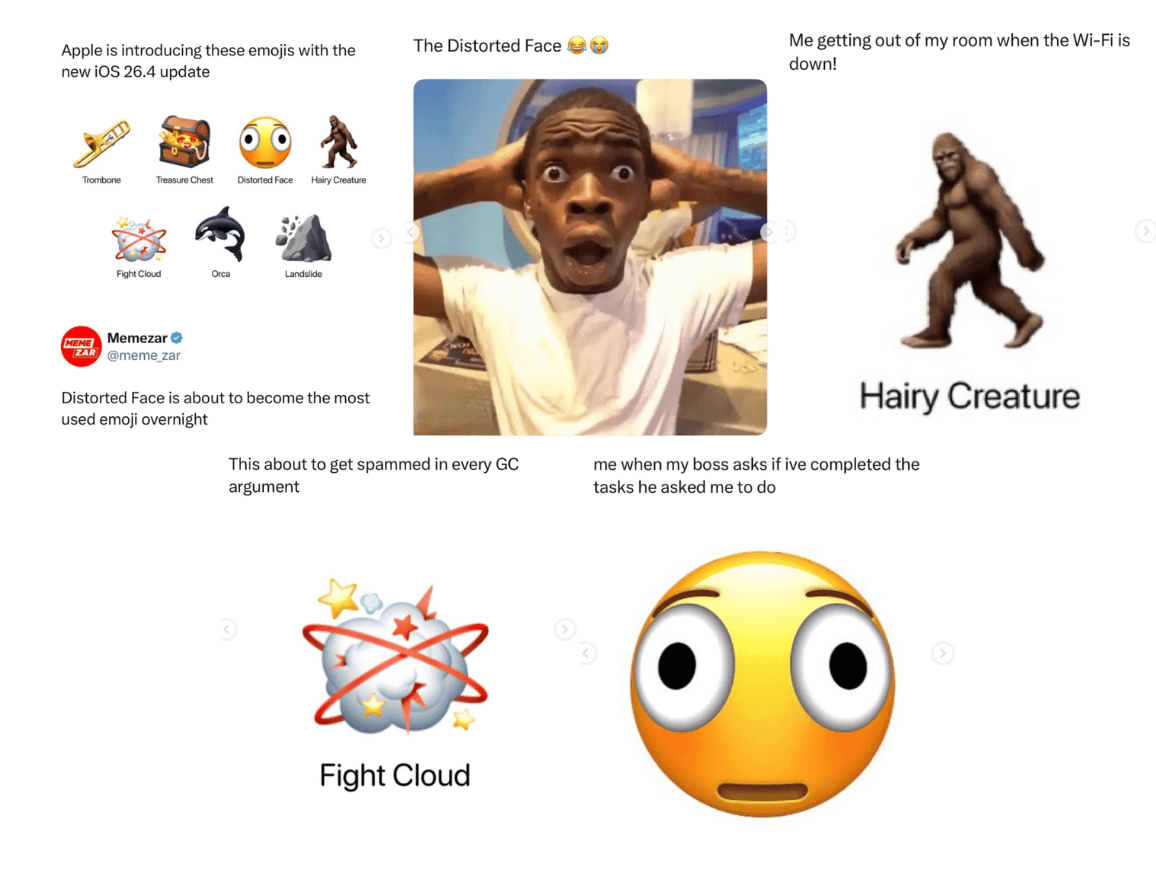 Emotion: The virality comes from a mix of excitement, humor, and “this is so random” energy — especially around the distorted face emoji, which users say perfectly represents stress, chaos, and “2026 energy.” Instead of just being a feature update, the emojis became the real main character of the rollout.