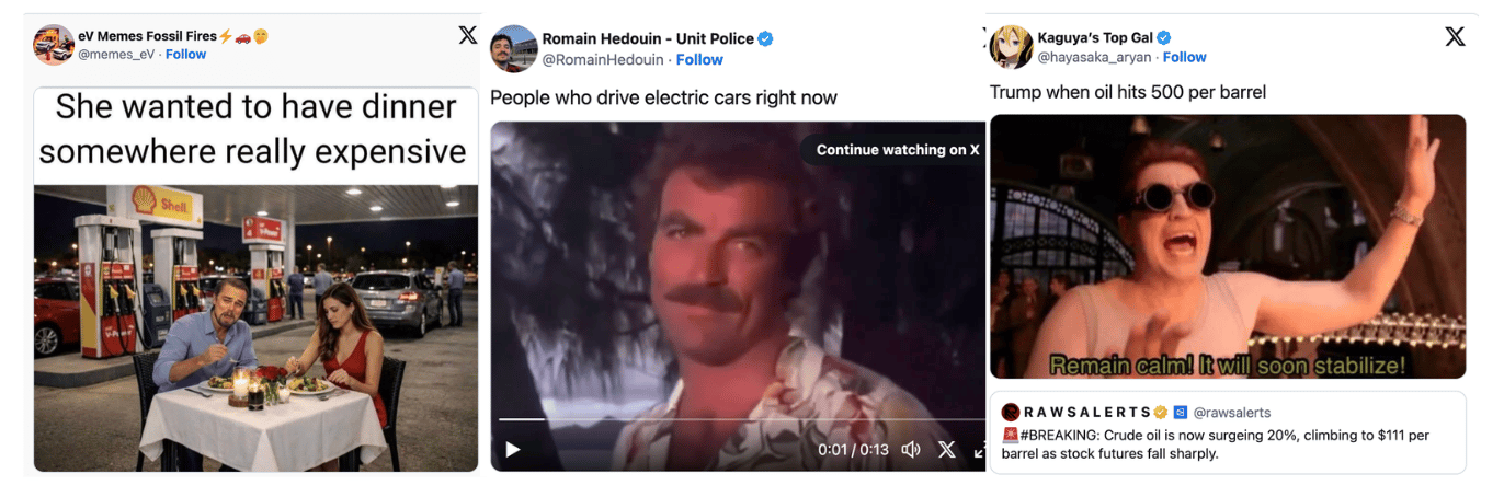 Emotion: The meme energy blends economic anxiety with relatable humor. Rising fuel prices trigger frustration and disbelief, so users turn it into jokes about budgeting, commuting, or realizing that “everything costs more now.”