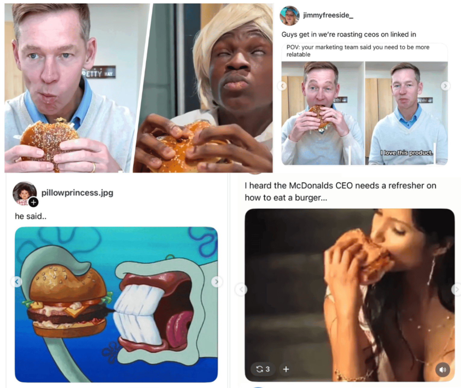 Emotion: The viral appeal comes from cringe humor and corporate irony. People found the contrast hilarious: the CEO of the world’s biggest fast-food chain appearing unsure how to eat his own burger. The awkwardness made the clip feel unintentionally comedic, turning what was supposed to be marketing into meme material.