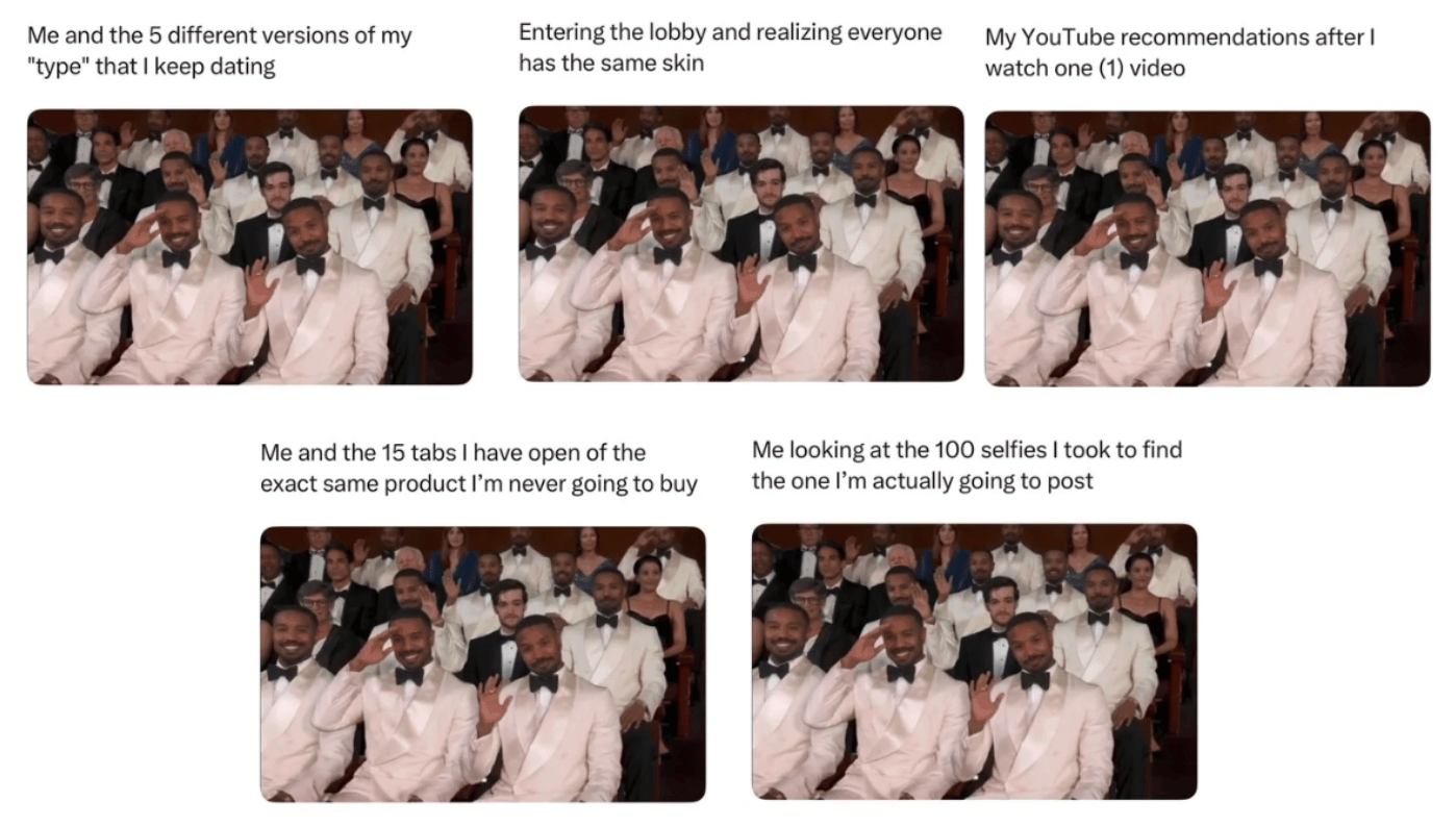 Pro Tip: Use reaction clips of Michael B. Jordan’s emotional acceptance speech or his now-viral “multiple versions of him sitting” reaction shots, with captions like “When every version of you realizes the grind finally paid off.” Pair them with triumphant music or dramatic movie-style edits. The meme spreads best when it blends the long-awaited win (his first Best Actor Oscar for Sinners) with that layered, overthinking energy — like every version of him processing the moment at once.